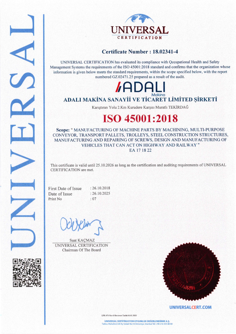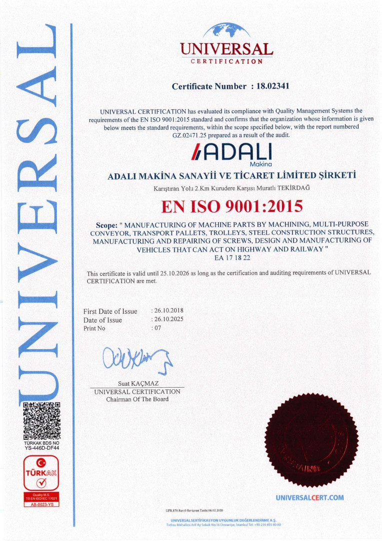 Working without compromising on quality at every stage of our production processes is the fundamental principle of Adalı Makina. We carefully check all features of our products, such as mechanical, dimensional, and surface quality, in accordance with international standards and our customers’ specifications.